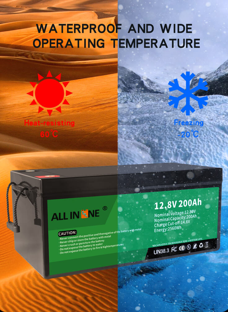4. Larĝa funkcia temperaturo: LiFePO4-baterio havas larĝan funkcian temperaturon de -20 ° C ~ 60 ° C.