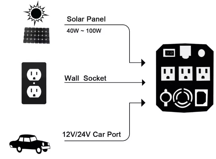 Kiel produktaĵo AC / DC 12 v / 220 v / 5 v, ĝi taŭgas por malsamaj aparatoj kiel poŝtelefonoj, tablojdoj, tekkomputiloj, malgrandaj presiloj, specoj de lampoj kaj lanternoj, malgrandaj fiŝujaj hejtiloj, fotografaj ekipaĵoj,