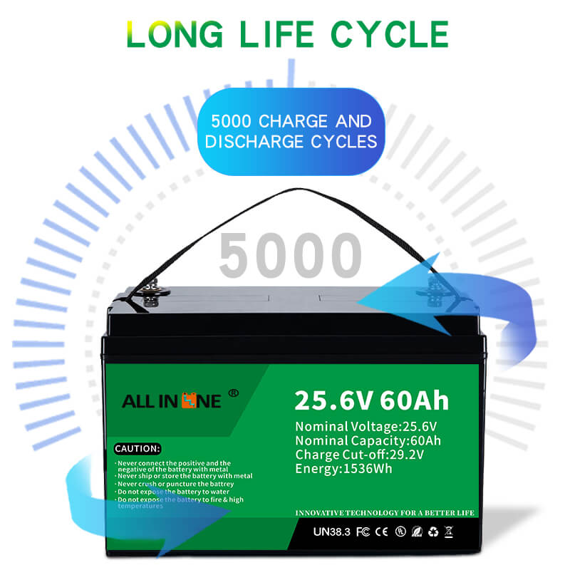 1. Longa vivo: LiFePO4-baterio havas longan vivociklon pli ol 5000 fojojn kaj ĝia daŭro daŭras ĝis 10 jaroj.