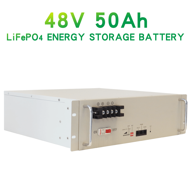 Ĉi tiu 48V 50Ah LFP-bateriosistemo havas enkonstruitan BMS kaj rustorezistaŝtala skatolo pentrita en nigra aŭ blanka.