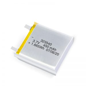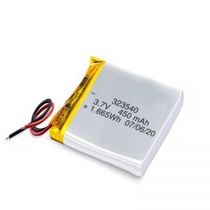 Kuirilaro de litio-polimero 450mah 3.7v reŝargebla kuirilaro de litio-jono / li-jono 323540 kun PCB