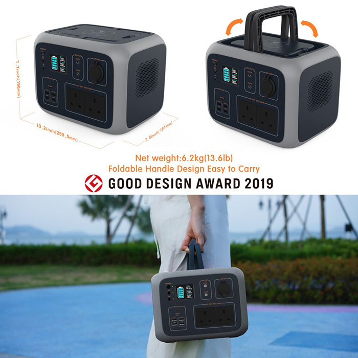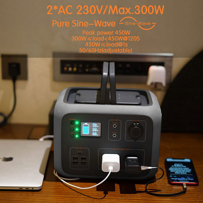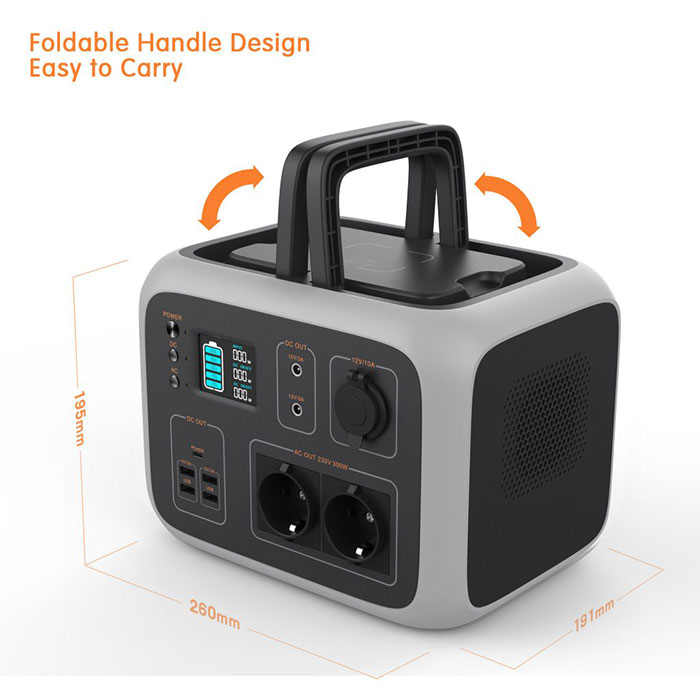 500Wh-Portebla Generatoro-Elektrocentralo kun Tute 300W DC / AC Inverter, DC / AC / USB-elirejoj por Subĉiela Tendara Vojaĝo