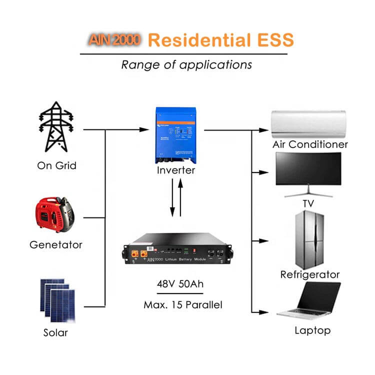 1.AIN2000 48v sunsistema kuirilaro estas disvolvita kun tre efika LFP-ĉelo 3.2V 50Ah kaj EV-norma strukturo por garantii sekurecon kaj elstaran servan vivon.