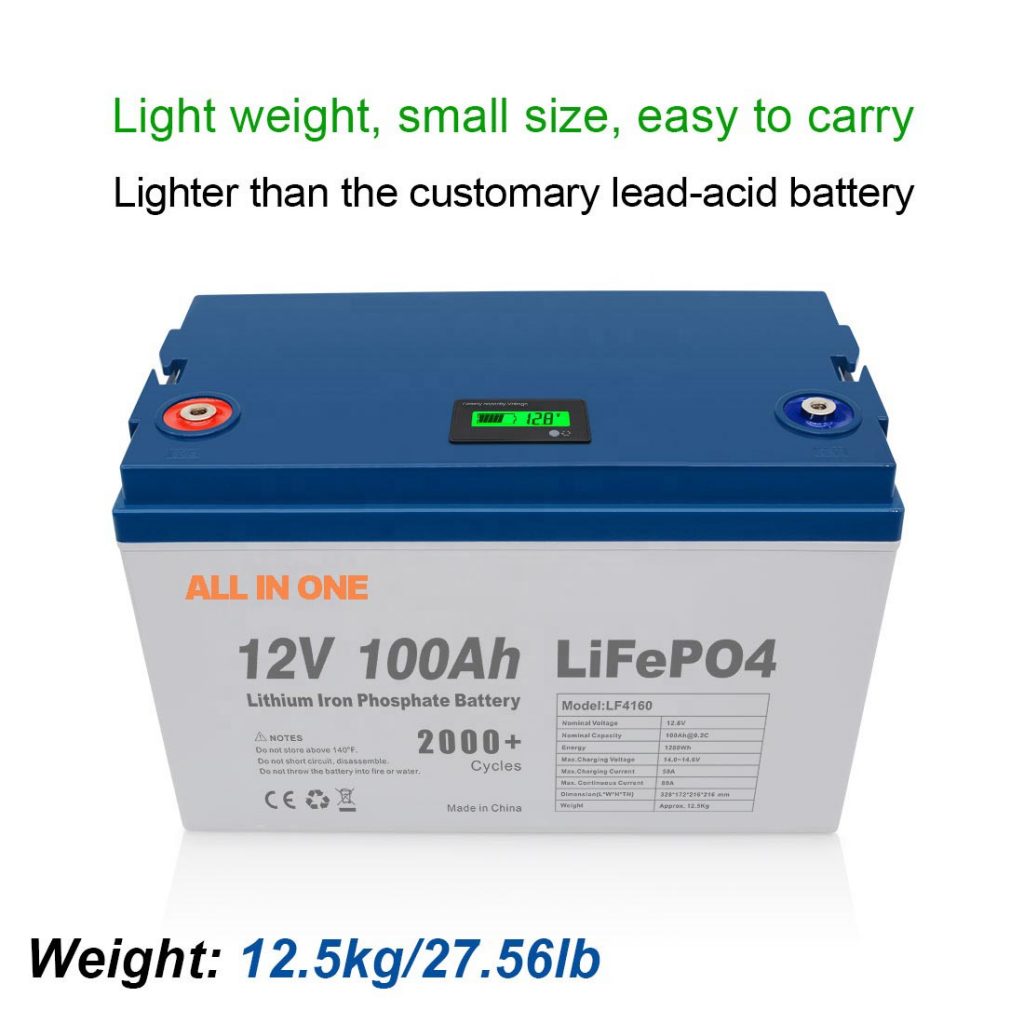 ◆ Pli malpeza pezo: Ĉirkaŭ 40% ~ 50% de la pezo de komparebla plumbacida baterio.