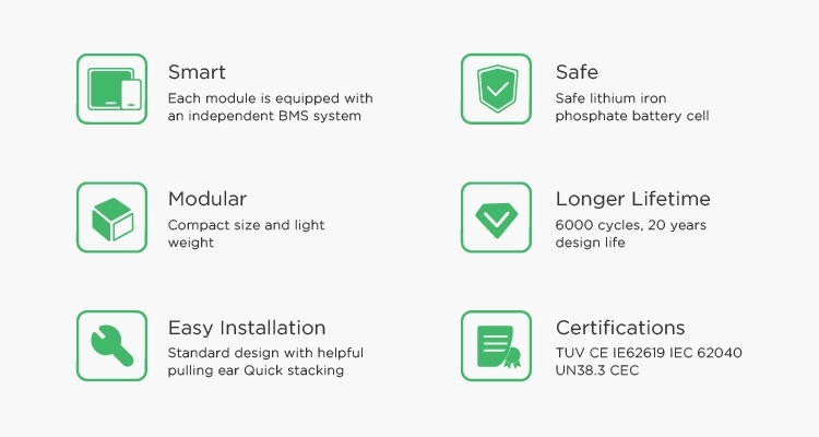 Atestado kaj Sekureco Stadard | Akreditita TUV / CE / EN62619 / IEC62040 / UN38.3 / CEC | |